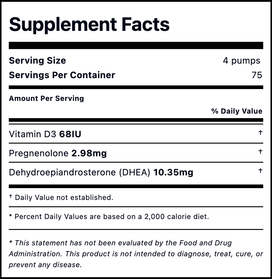 Or as recommended by your healthcare practitioner. Consult your healthcare professional prior to use if you are pregnant, nursing, taking medications, or have a medical condition. Because this product contains hormone precursors (DHEA and Pregnenolone), use only as directed under the supervision of a qualified healthcare practitioner. Do not exceed recommended serving. Keep out of reach of children.